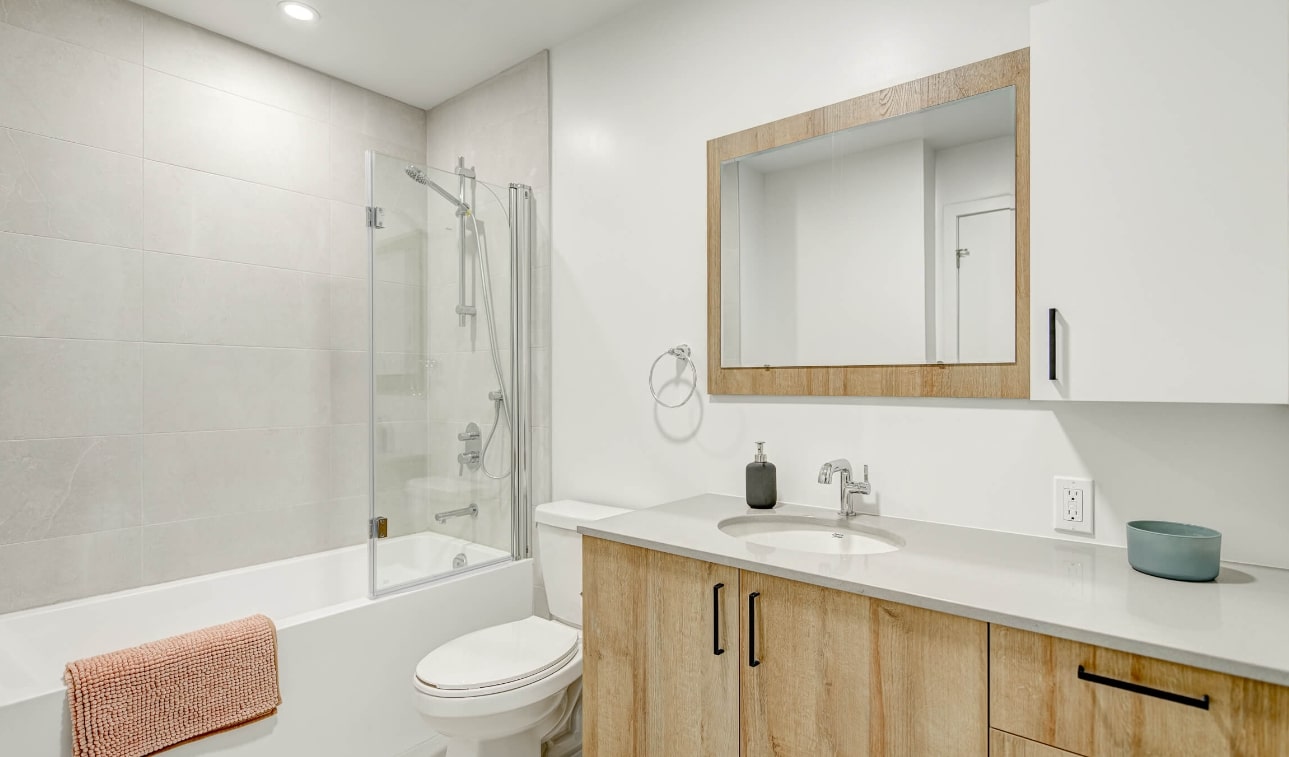 • Contemporary vanity with quartz countertop